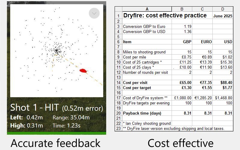 As well as providing accurate feedback after every shot. DryFire can save you a fortune in cartridge, clay and travel costs.