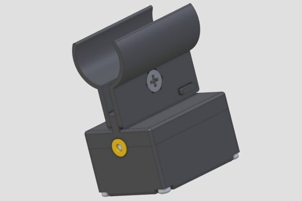 The trigger switch is connected by a short wire to the laser unit which clips underneath the barrel of your gun and is powered by a replaceable CR2032 button battery. The laser unit sends out a short pulse of infrared laser light when you press the trigger. This is used by the DryFire software to detect when you fired and where your shot went.