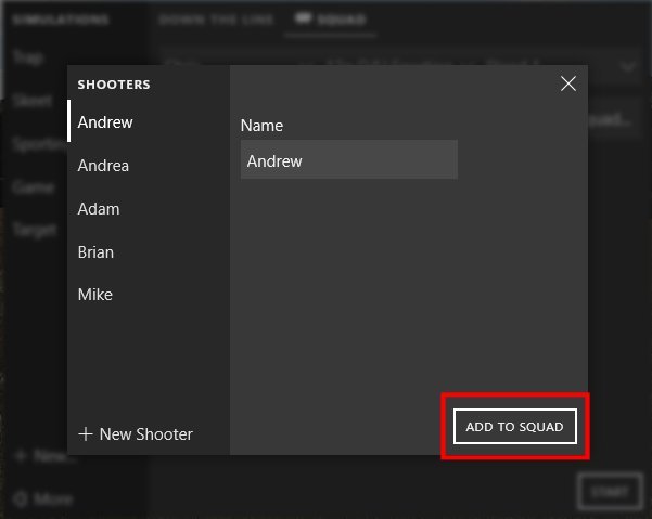 If you don't already have a squad set up you will see the current shooter listed along with three pull down lists: