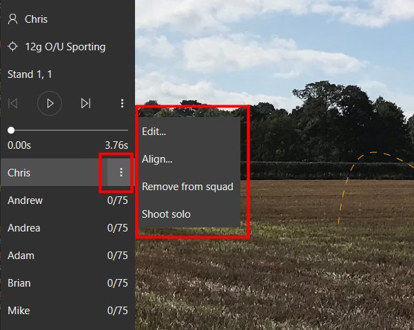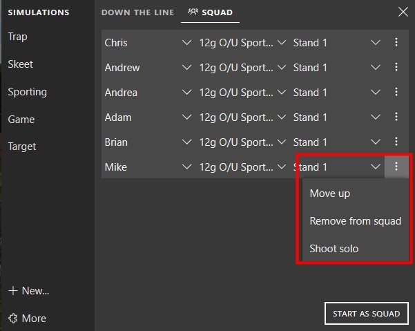 Click on the three vertical dots to change the squad order, delete a shooter or decide that one shooter is going to shoot alone.