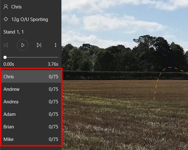 When shooting as a squad the standard sidebar changes slightly to show you each shooter and their scores, with the current shooter being highlighted with a different background colour.