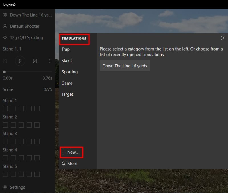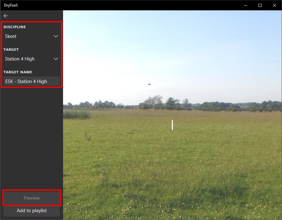 "Select from library" allows you to select a target from a list of simulations provided in the top left of the screen. In the example below Skeet Station 4 High has been selected followed by "Preview" to show the path of the clay.