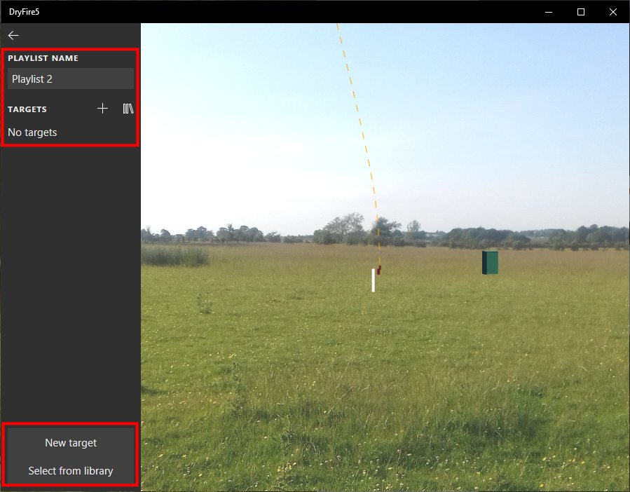 Give your playlist a name ("My targets" in the example below) then select either "Select from library" or "New target".
