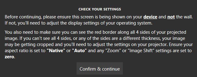 - A red laser dot will appear close to the centre of the screen along with a projected image of a cross-hair cursor. Use your mouse or touchpad to move the projected cursor so its centre is over the dot, then click left.