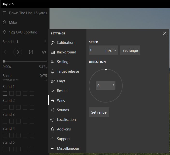 Set wind speed - or range of wind speeds for DryFire to pick one at random.