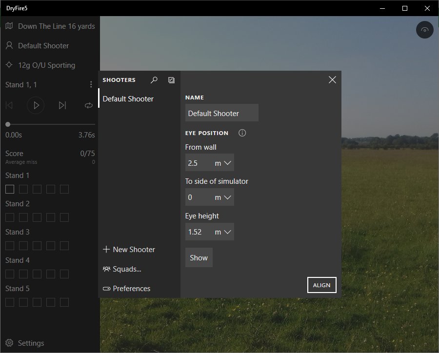 For accurate target display, DrFire needs to know how far the shooter s from the wall./scree, how far to one side of the simulator (positive values to the right, negative values to the left) and the shooter's eye height.