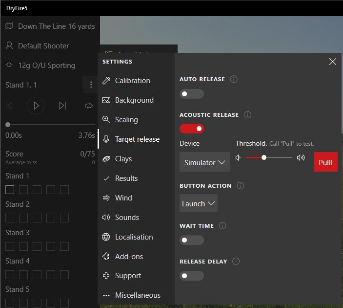 Targets are normally prepared for release when you click on Start. The green microphone image will be displayed and the system will wait for you to call "Pull".